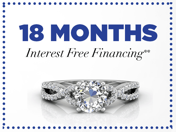Our designers are also bringing additional merchandise to select from in-store to have a wide selection of rings to shop. Plus, we are offering a financing option of 0% for 18 months (subject to credit approval)**.