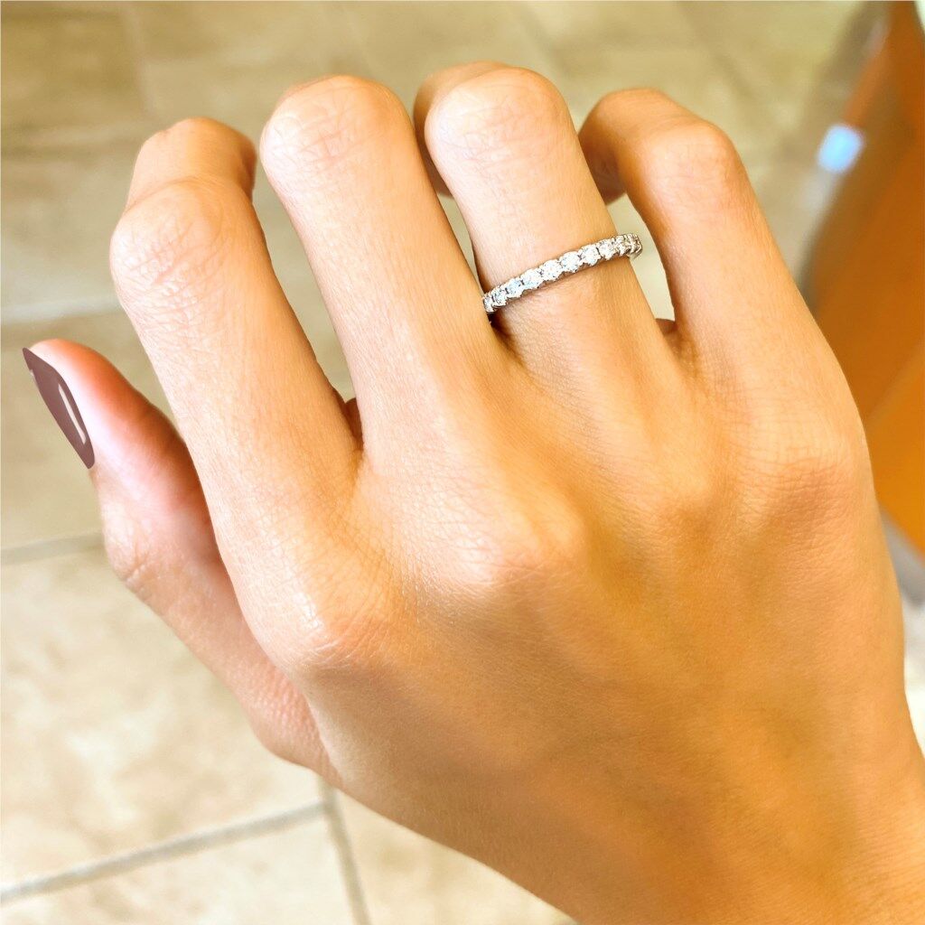 Our Amore Collection features our custom designed band, with only the best diamonds to wrap around the entirety of the ring.