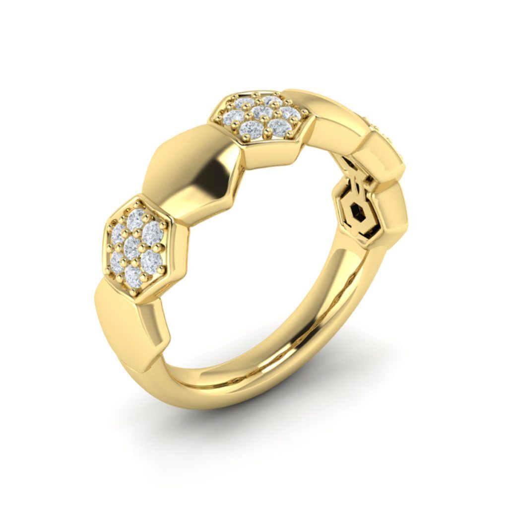 Golden honeycombs are paired with diamond honeycombs to create this fabulous ring.