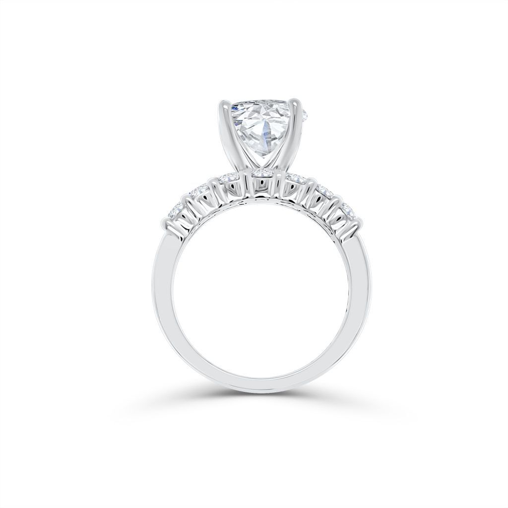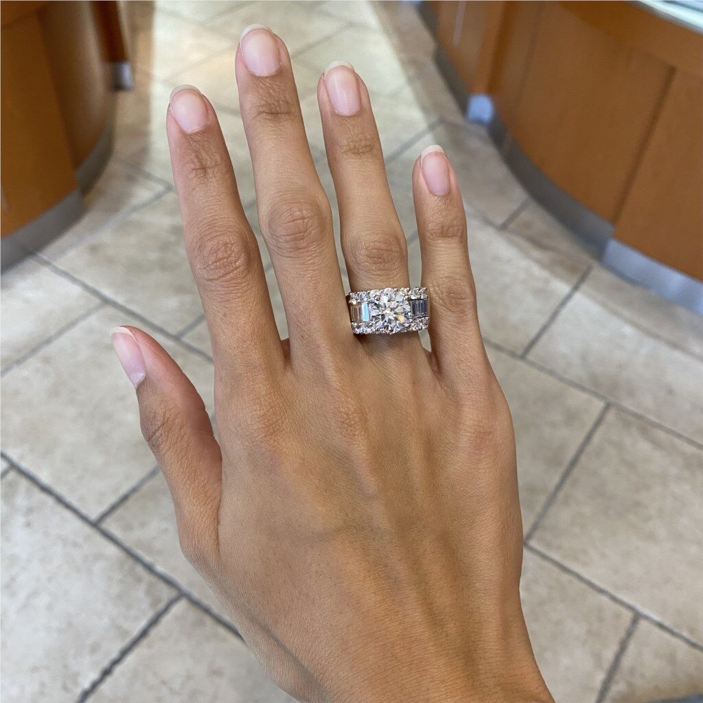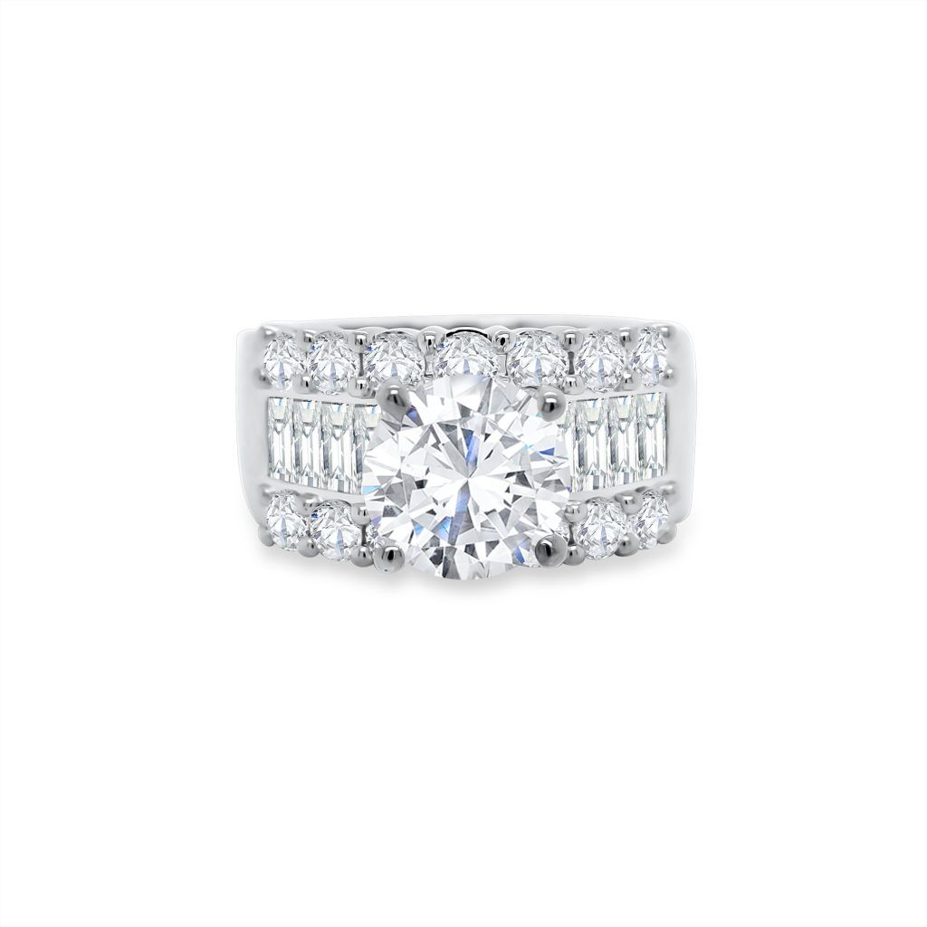A combination of round and baguette diamonds create this one of a kind engagement ring! A wide band for extra comfort, this is the perfect ring for someone who can’t pick just one type of diamond for their engagement ring.
