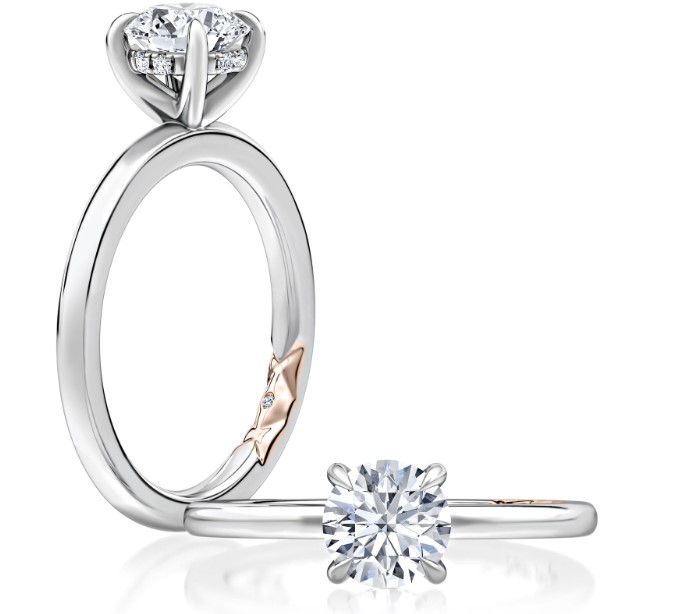 Celebrate your commitment with the A.Jaffe Solitaire Engagement Ring with Hidden Diamond Halo, a testament to timeless design and meticulous craftsmanship. This exquisite ring features a sleek and slim profile, adorned with a hidden diamond halo beneath the center stone, all crafted in radiant white gold. The subtle contrast of textures symbolizes the harmony of enduring love and modern sophistication. Expertly designed for comfort and durability, this engagement ring embodies A.Jaffe’s legacy of excellence, making it a perfect emblem of your unique journey together.