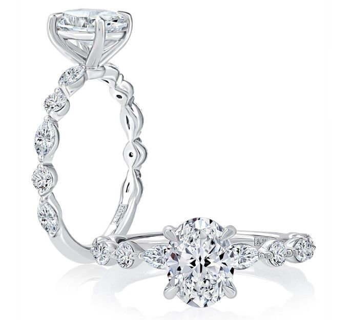 Classic Round Center Stone Diamond Engagment Ring with Alternating Shape Stones Band