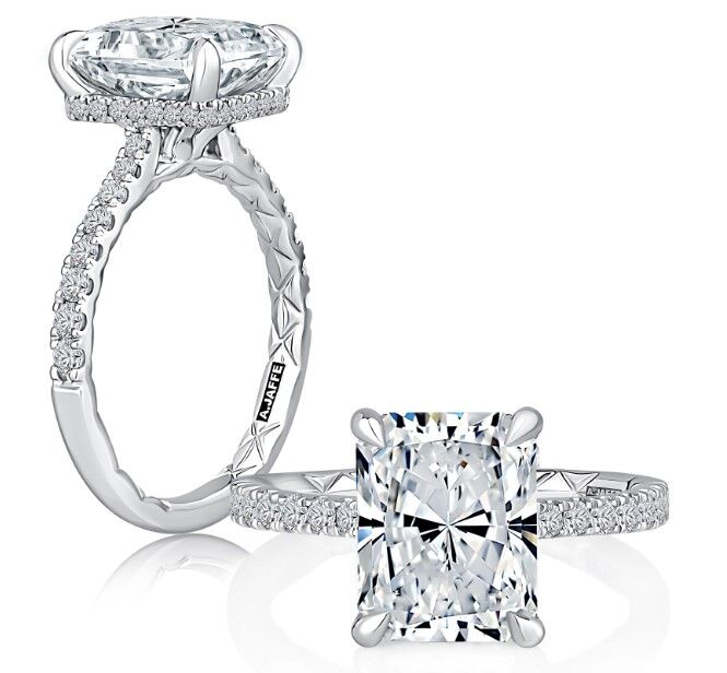 Radiant Shaped Diamond Engagement Ring with Hidden Halo