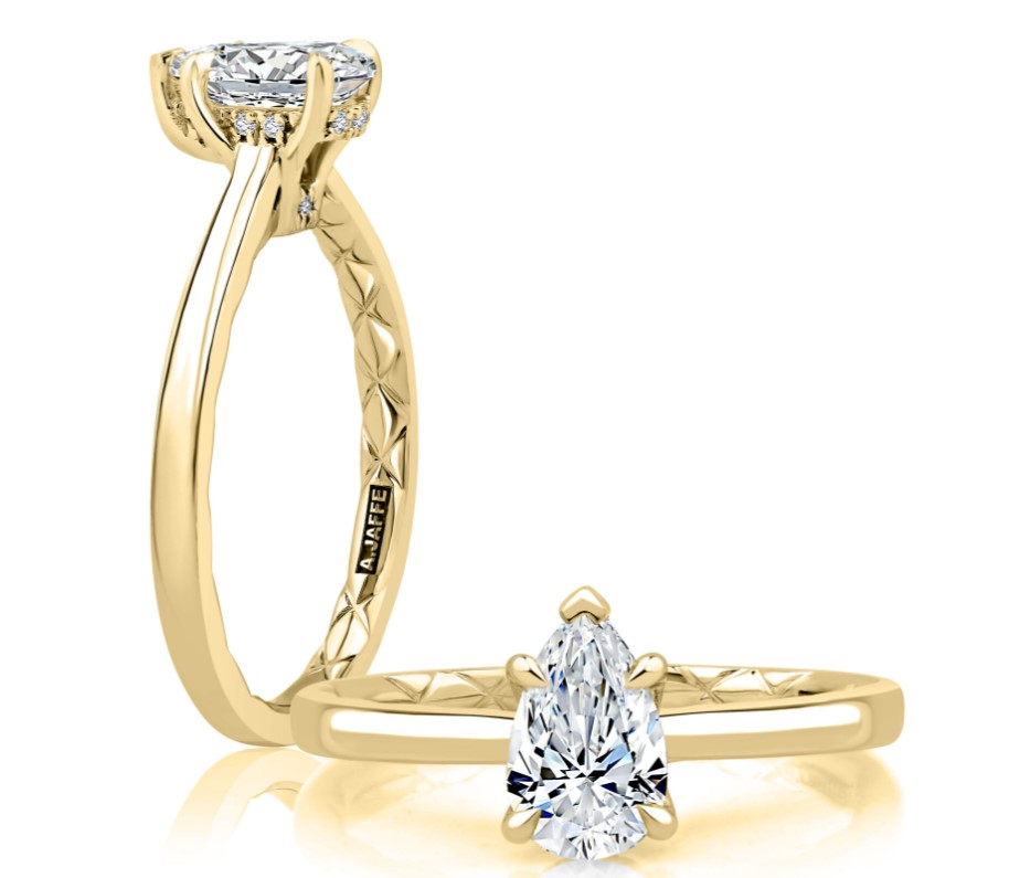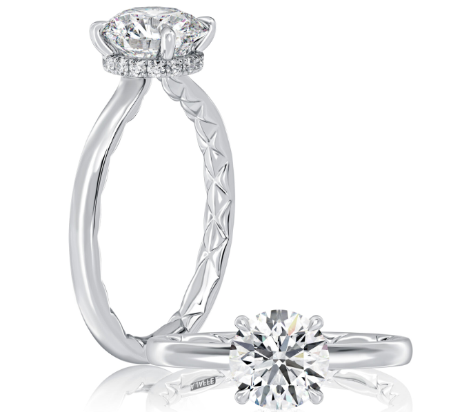 Coming from the A.JAFFE Quilts™ Collection, this ring highlights a Round Center Diamond suspended in four prongs, The solitaire setting of this ring is sure to give the center stone the sparkly attention it deserves. Additionally, this solitaire engagemen