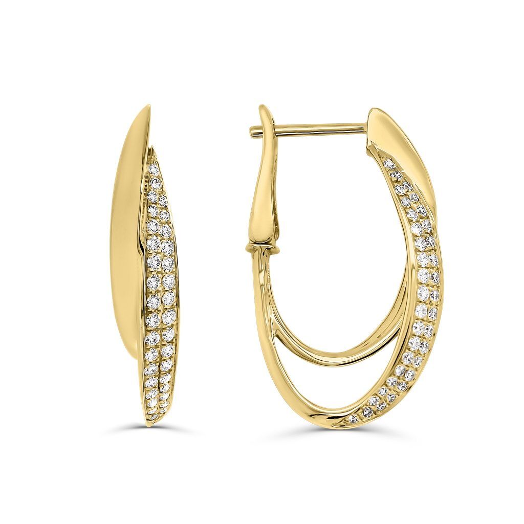 Yellow Gold Diamond Twisted Oval Hoop Earrings