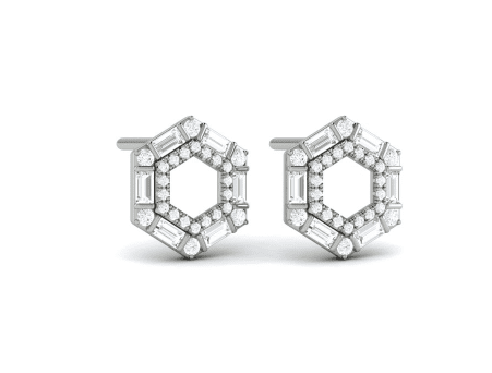 Diamond Baguette Double Row Open Honeycomb Stud Earrings