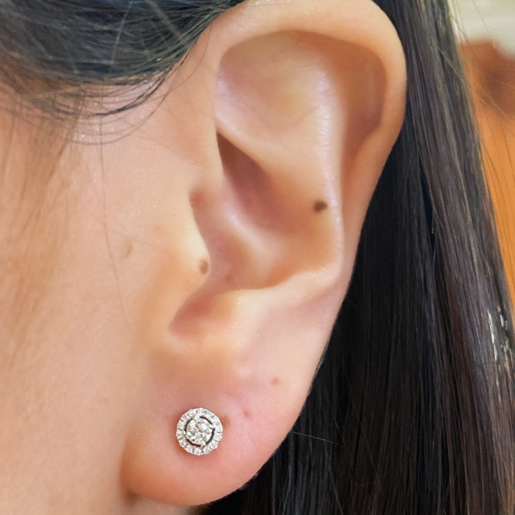 A classic pair of diamond studs, but with a dazzling diamond halo.