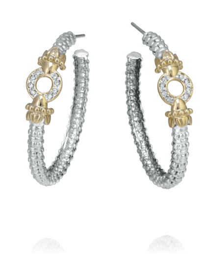 Sterling silver and 14K gold complement one another perfectly on our eye-catching hoop earrings. Adorned with diamonds for a shimmering effect, they translate from day to evening in style.