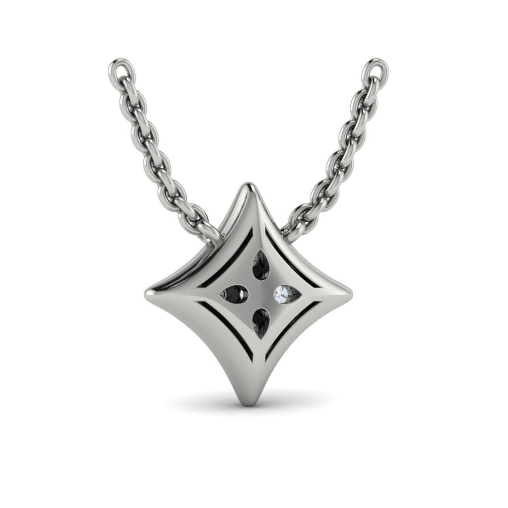Five sparkling diamonds rest at the center of this iconic white gold star.