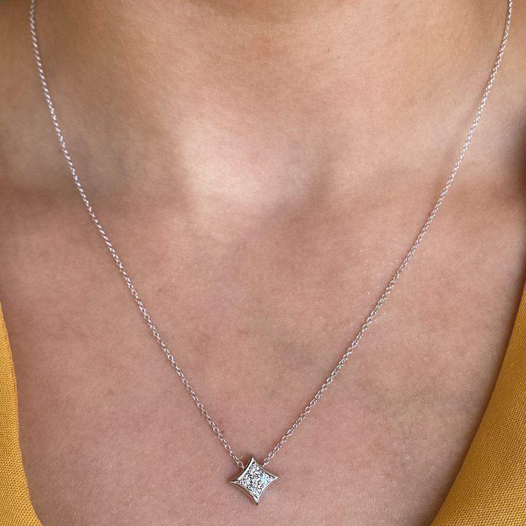 Vlora Estrella Collection White Gold Channel Set Diamond Cluster Star Necklace