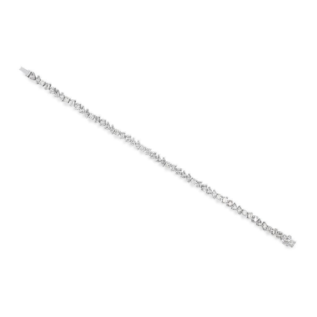 A mixture of round, oval, pear, marquise and emerald cut diamonds create this special tennis bracelet.