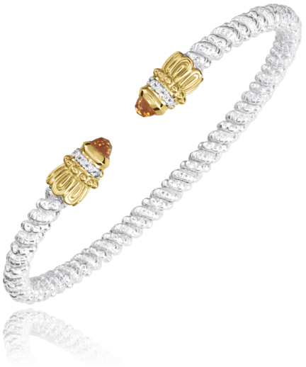 Open Cuff Bracelet with Citrine & Diamond Accents in Gold & Silver