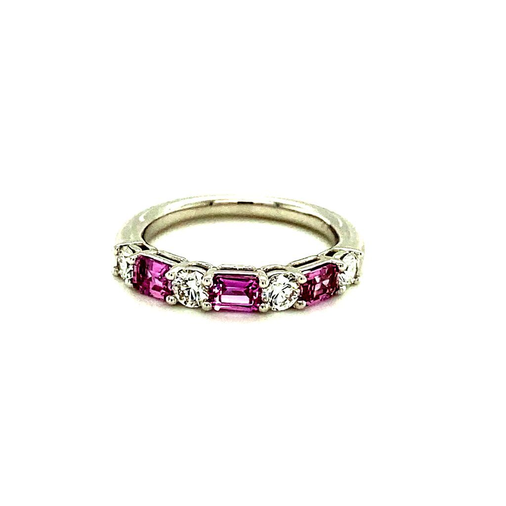Ancona White Gold Pink Sapphire & Diamond Alternating Band