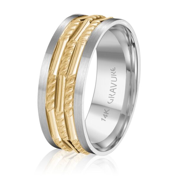 Two-Tone White & Yellow Gold Carved Wedding Band