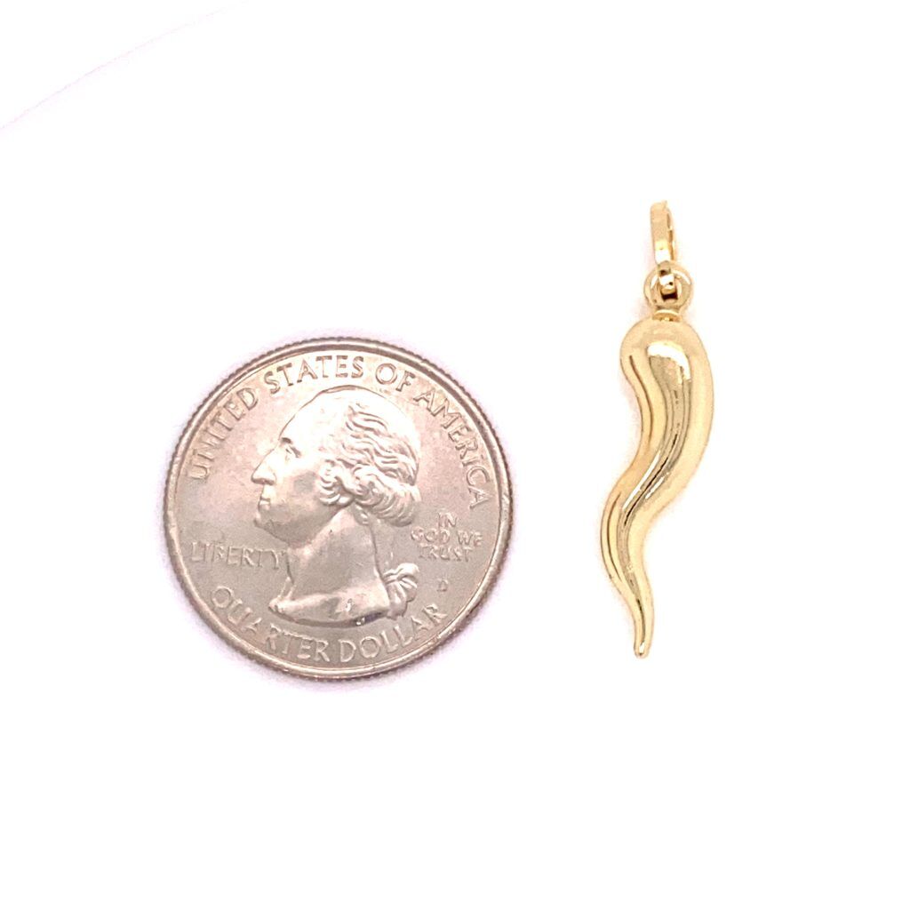 A high polished yellow gold Italian horn pendant. Chain sold separately.