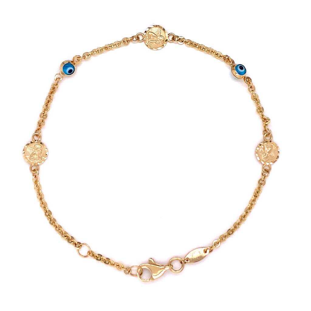 Yellow Gold Angel Medallion Evil Eye Bracelet