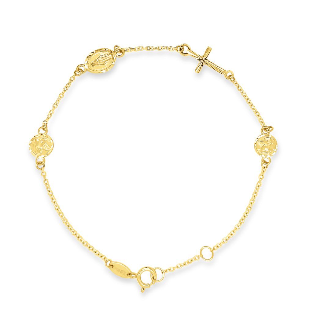 Yellow Gold Mother Mary Cross and Baby Angel Bracelet