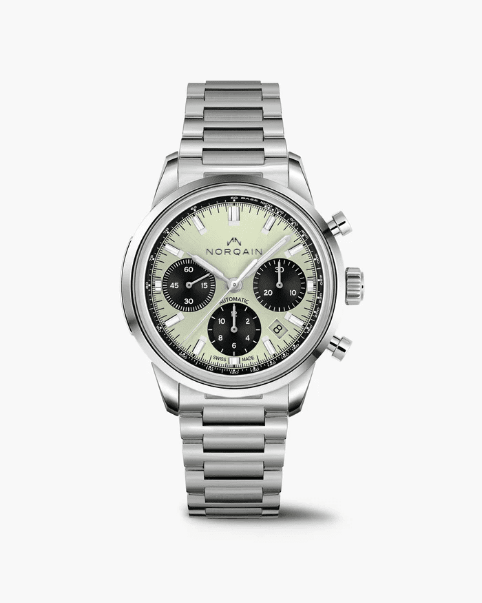 The Freedom collection is strongly tied to an appreciation of the great outdoors that carries across generations. The vintage-inspired design elements including the pistachio-coloured dial evoke the aesthetics of the 60s.