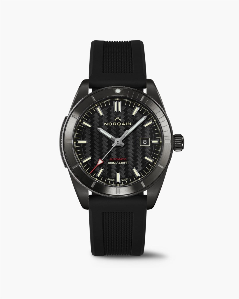 The Adventure line embodies the thrill of exploring and conquering nature’s playground – the trails, the summits and the tides. The unique NORQAIN pattern dial is inspired by the Swiss mountains.