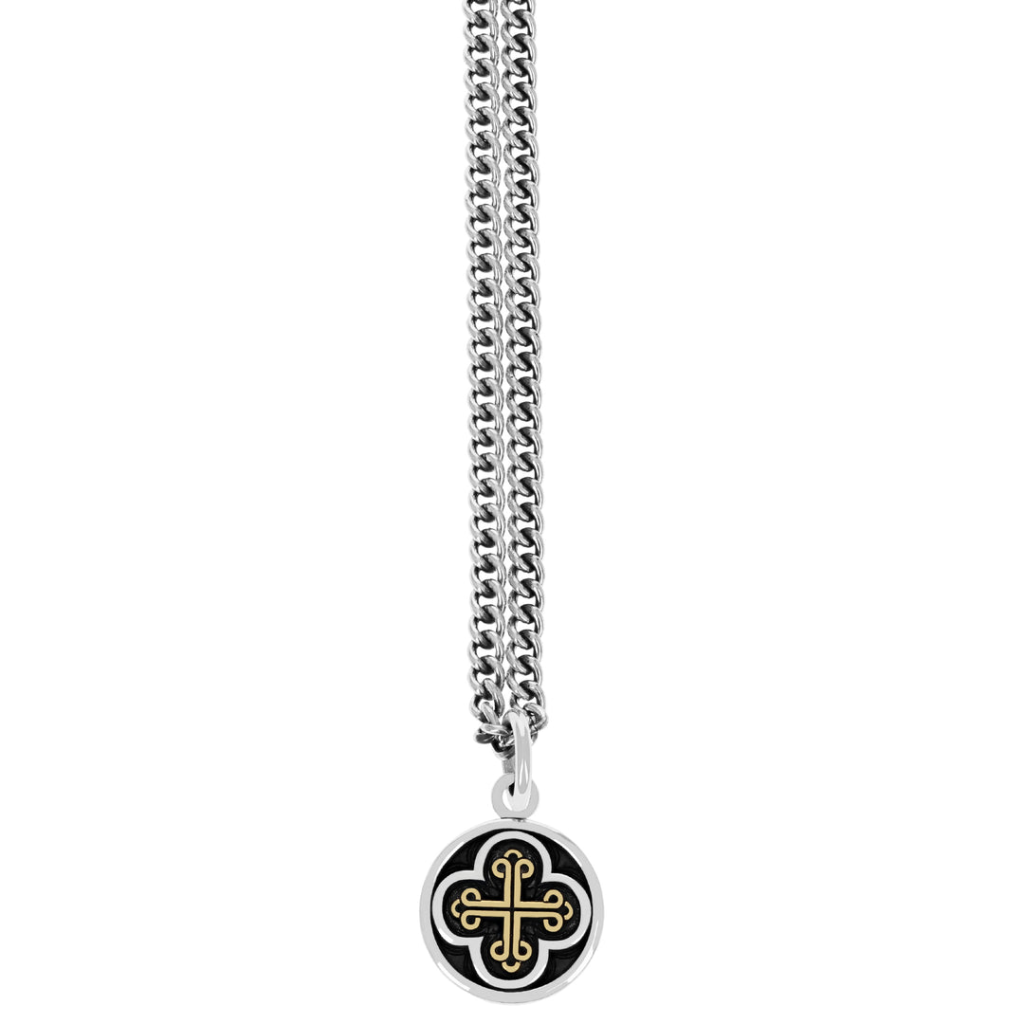 The Symmetrical Traditional Cross Pendant brings sacred geometry to the streets. Crafted in .925 sterling silver with a bold gold alloy inlay, this piece strikes the perfect balance between reverence and rebellion. Its clean, equal-armed design makes a quiet statement—but the attitude is loud. Suspended from a 24″ silver curb link chain and finished with a solid lobster clasp, it’s handmade in the USA for those who wear their convictions like armor. No frills. No apologies. Just power, purpose, and the King Baby stamp of soul.