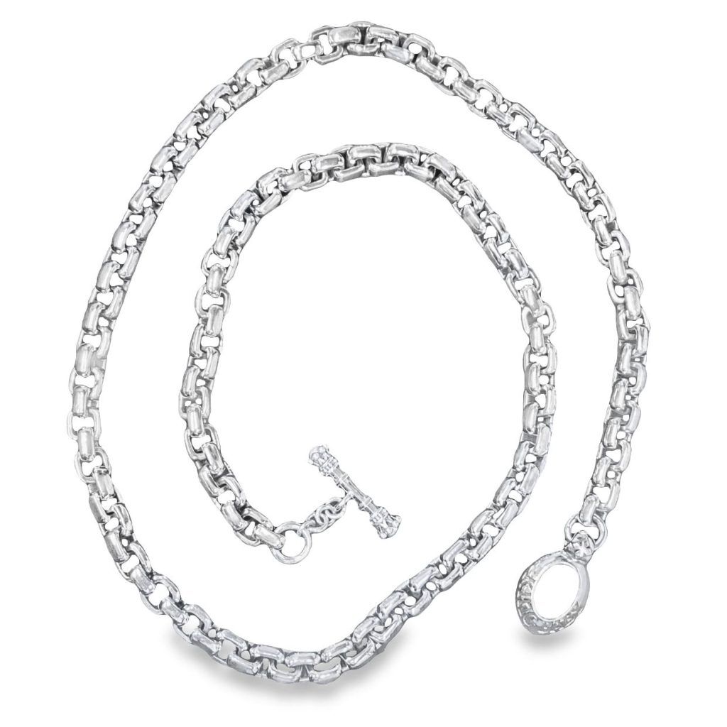 Discover the timeless elegance of this silver chain necklace, designed to elevate any outfit. Its intricate links and polished finish create a stunning visual appeal, making it a perfect accessory for both casual and formal occasions.