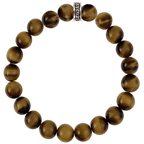 10mm Brown Tiger Eye Bead Bracelet with Logo Ring