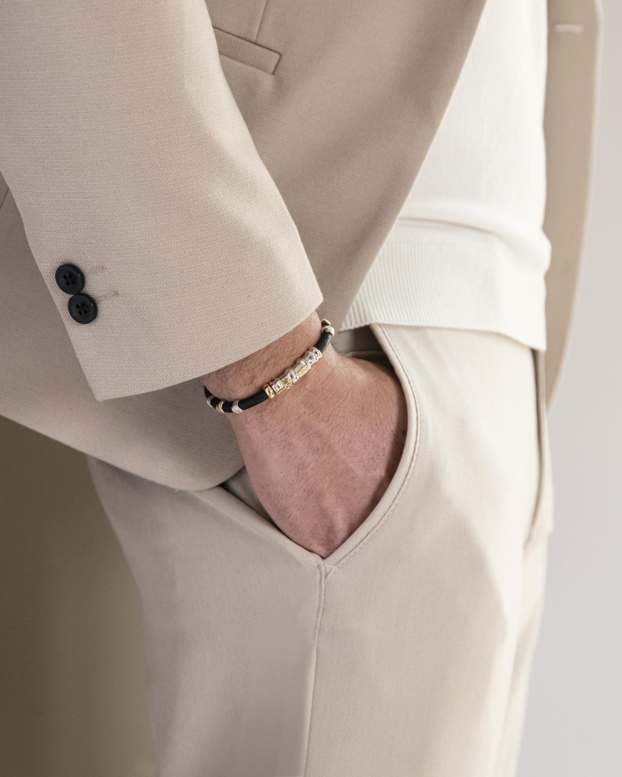 Rooted in the artisanal spirit of Misani’s Grand Tour collection, this 5mm leather bracelet captures the essence of worldly elegance. Handcrafted in Italy, it features a sculptural array of sterling silver and 18K yellow gold elements, brought to life by a bezel-set brown diamond—a rare, earthy accent that reflects the sophistication of the modern traveler. The concealed clasp ensures an uninterrupted design, while the signature engraved “MISANI” bar anchors the bracelet with distinctive character. Worn with neutral tailoring or weekend casuals, this bracelet speaks volumes in quiet luxury. Exclusively at Ancona Jewelers—where craftsmanship meets cultivated taste.