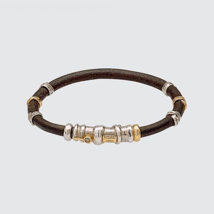 Misani Grand Tour Leather Bracelet with Brown Diamond, 18K Gold & Silver Accents