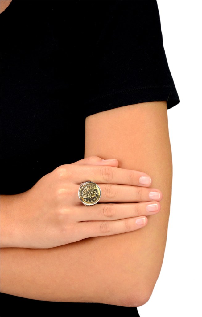 The Liberty Headdress Signet Ring is straight-up American legend—reborn in .925 sterling silver and gold alloy. Featuring a bold depiction of Lady Liberty in full feathered headdress, this ring channels vintage coin style with outlaw soul. Detailed laurels carve down each side of the band, adding layers of symbolism and grit. It’s heavy in hand, loud in spirit, and handmade in the USA for those who live by their own rules. Wear it as a badge of honor, a nod to independence, or a reminder that liberty never backs down.